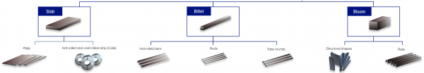Finished steel is the term used to describe products obtained upon hot rolling/forging of semi-finished steel products, such as blooms, billets or slabs - colloquially known in the industry as 'semis'. These cover two broad categories of products, namely 'long' products and 'flat' products.
